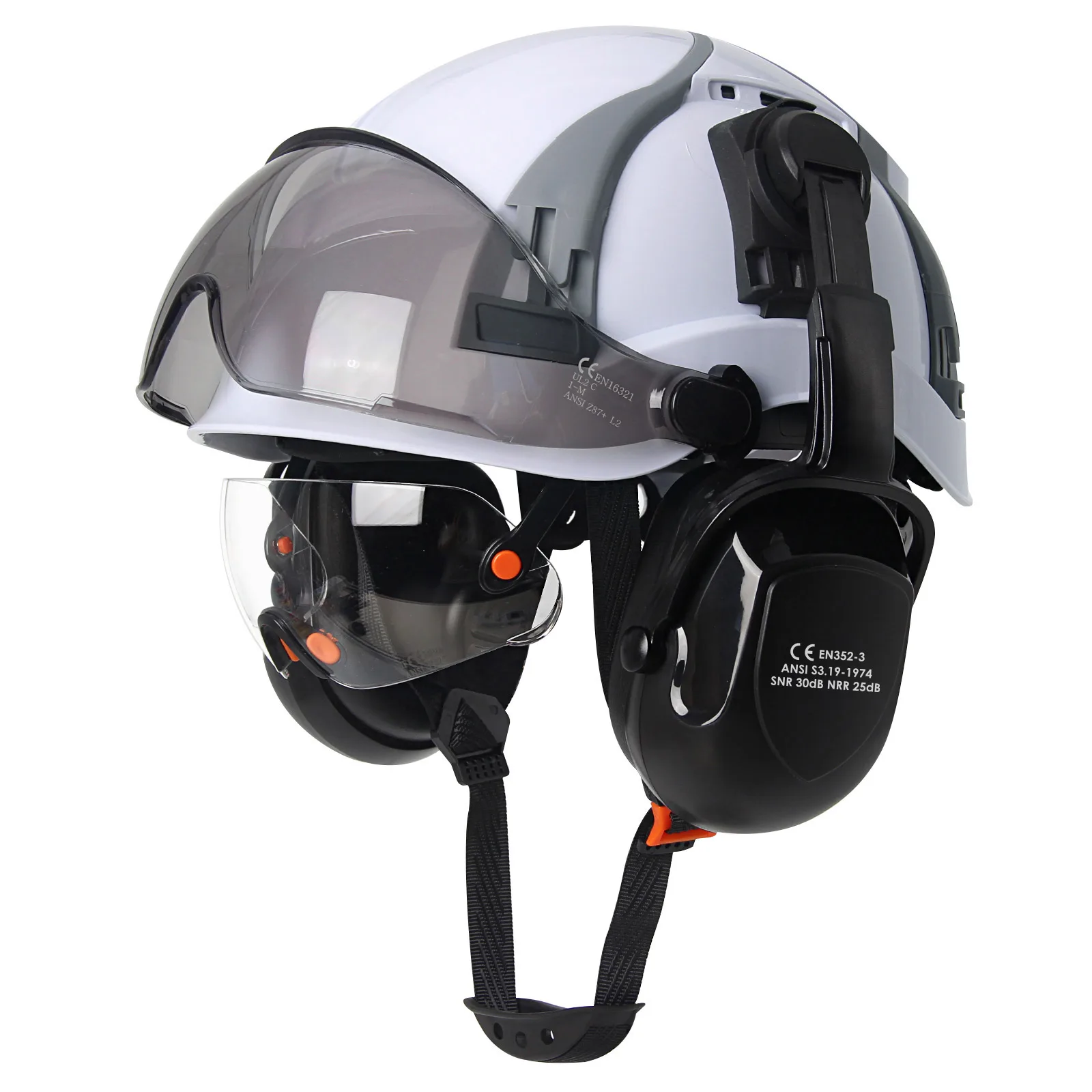 【Multifunctional and Widely Used】Low Profile Breathable Hard Hat with Visor and Earmuffs Kit Ideal for Head and Eye and Hearing Protection, Suitable for Construction Work Helmet Hard Hat, Safety and Rescue Hard Hat Helmet, Forestry Tree Work Hard Hat Helmet, Carpentry , machinist, height and scaffolding work, suitable for any trade requiring general head protection. Comes with a pair of ear cups that provide up to 23dB NRR to protect ears from damage caused by loud noises.