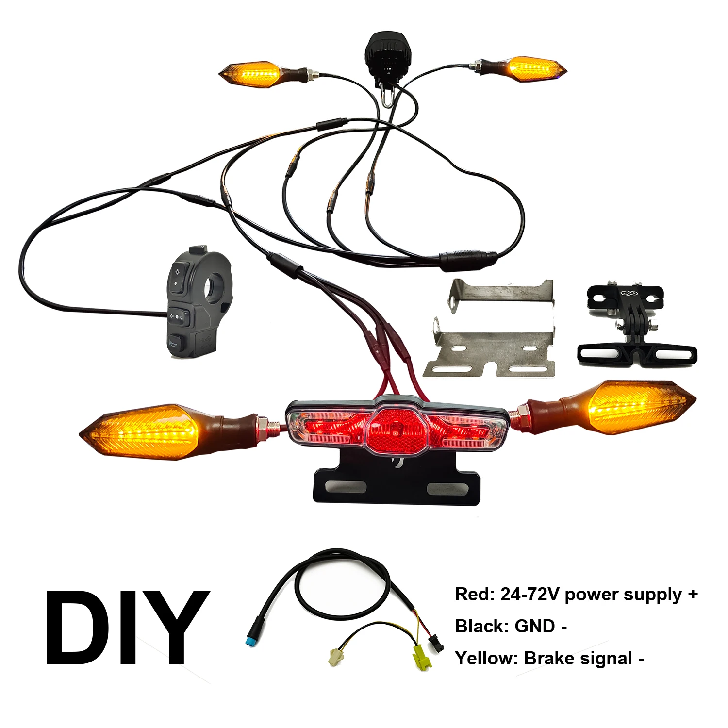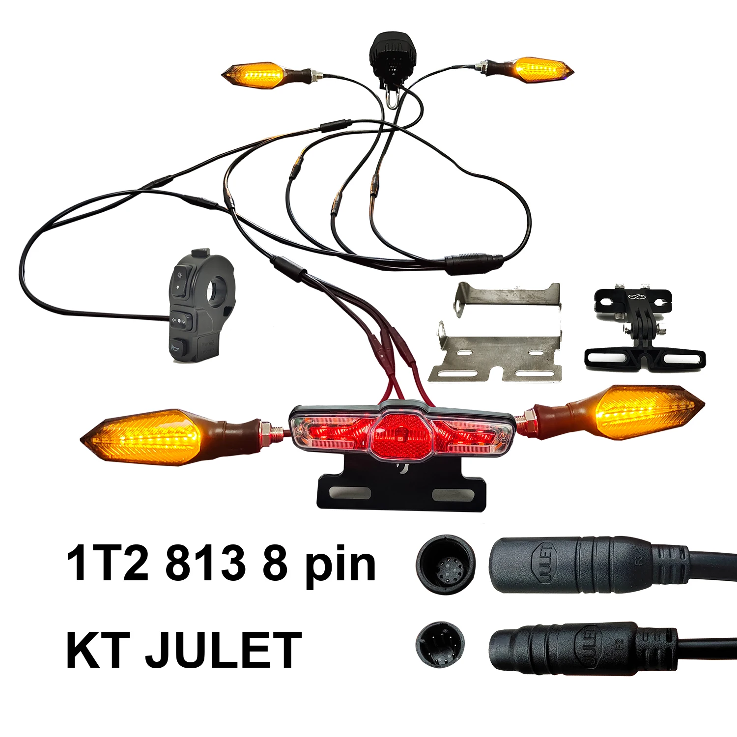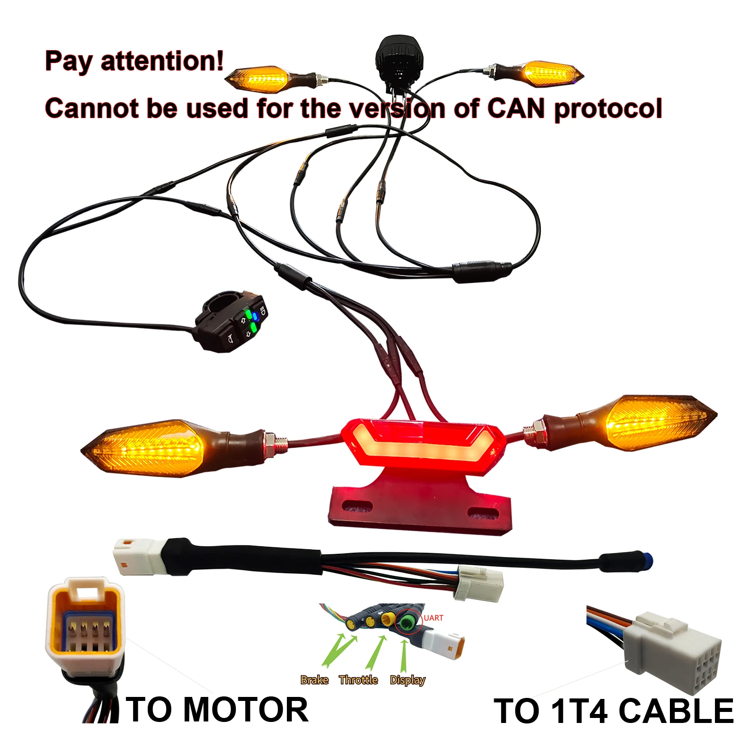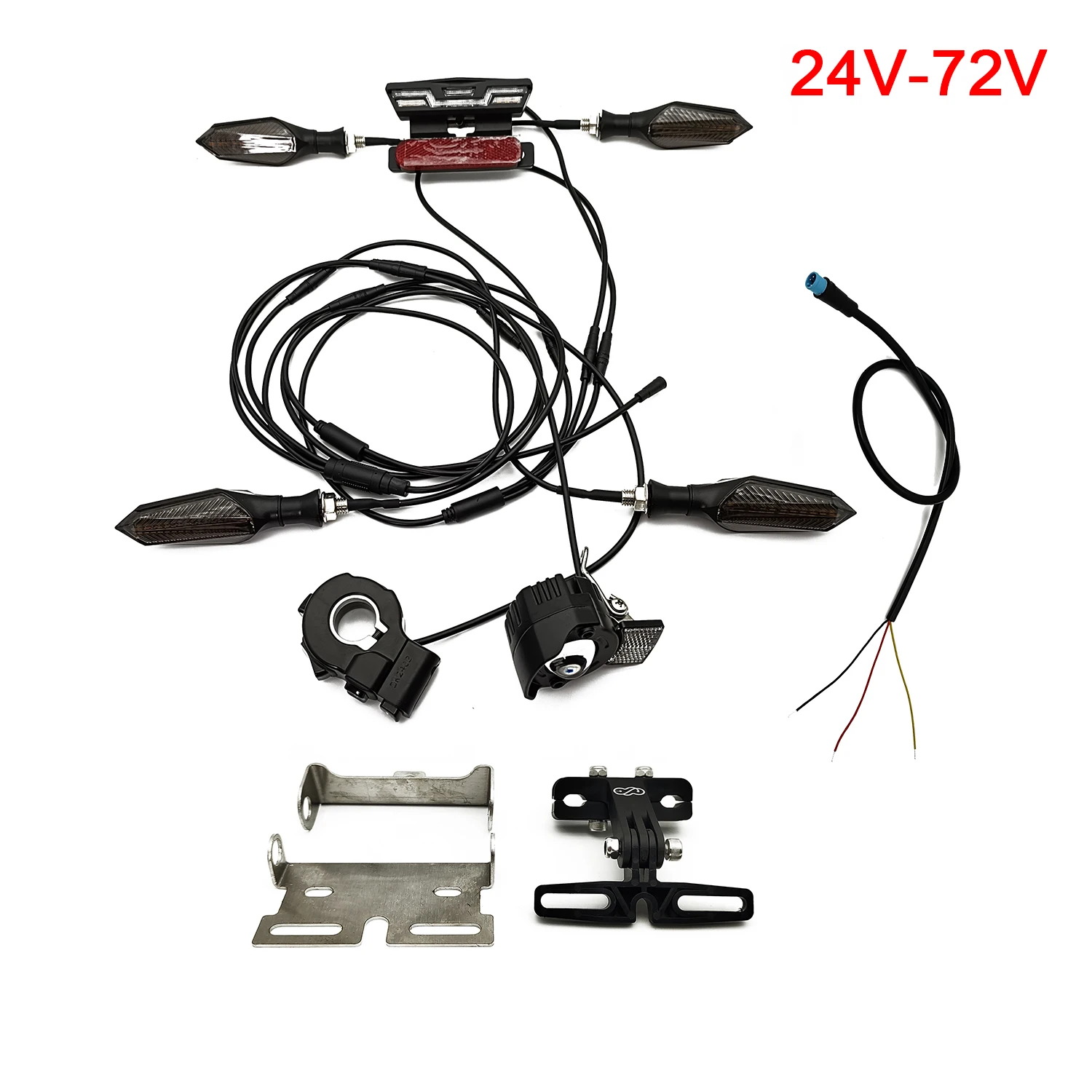 Electric Bicycle Waterproof Cable Light Set Front Rear Flashing Dynamic Turn Signals 24V 36V 48V 52V 60V For BAFANG KUNTENG