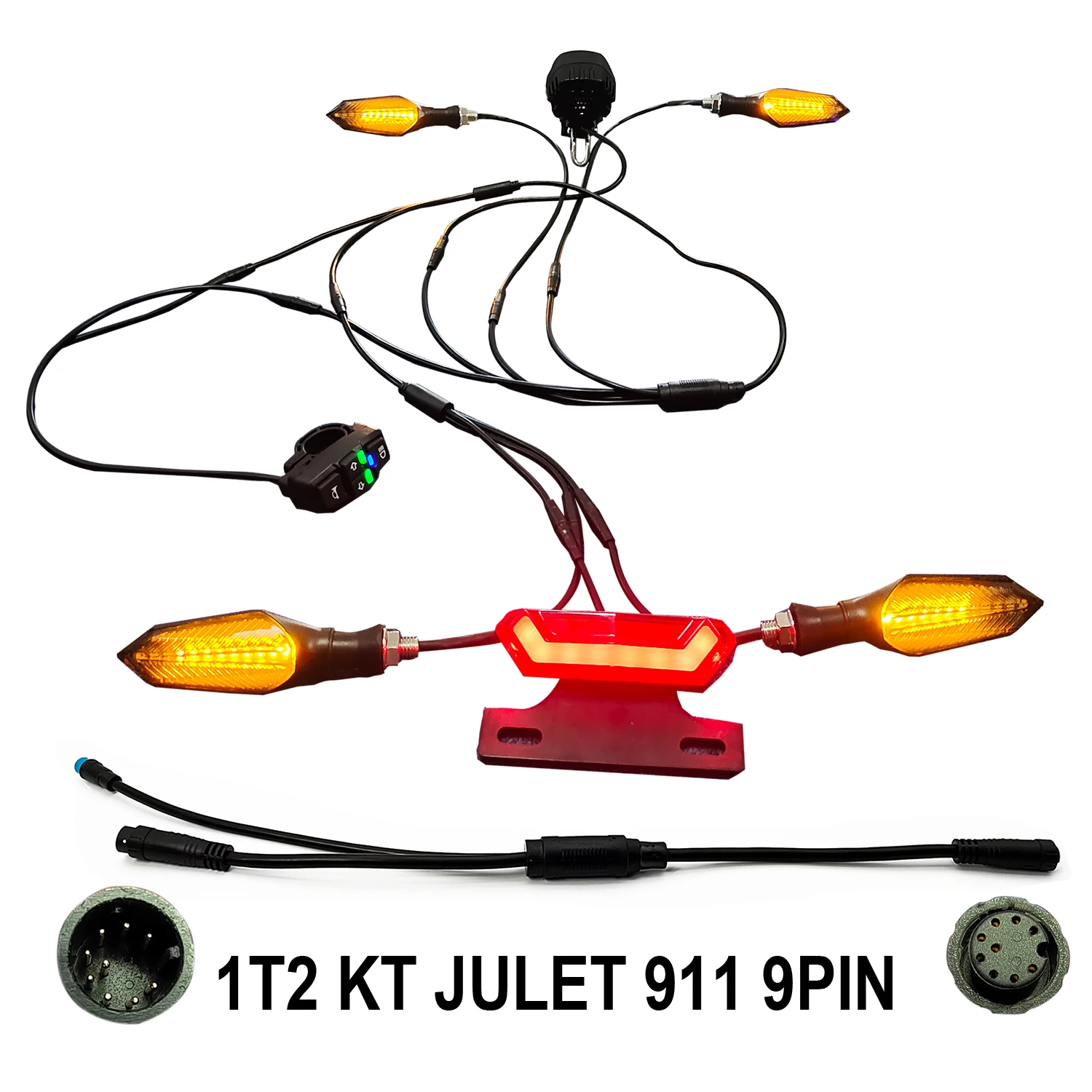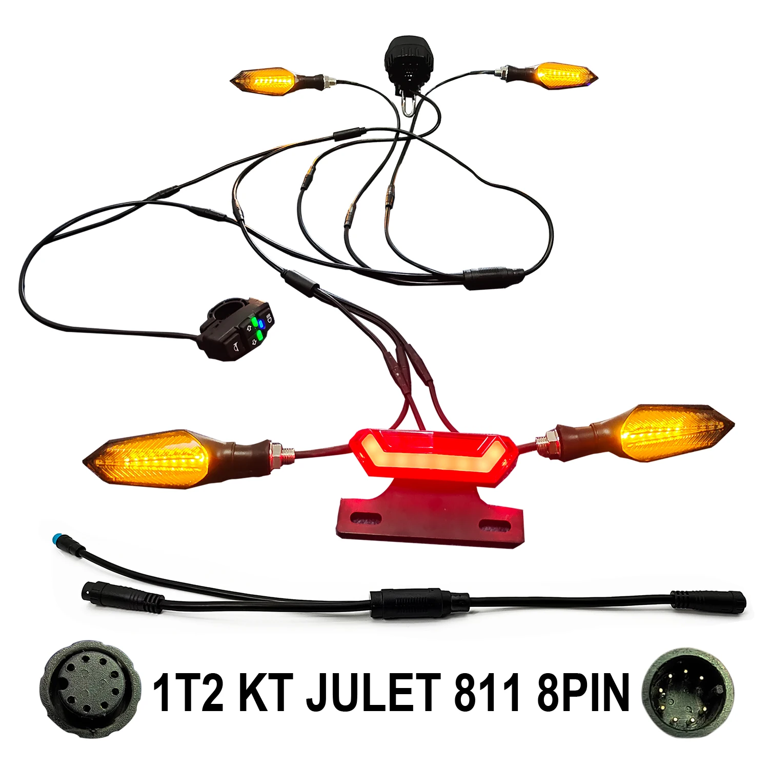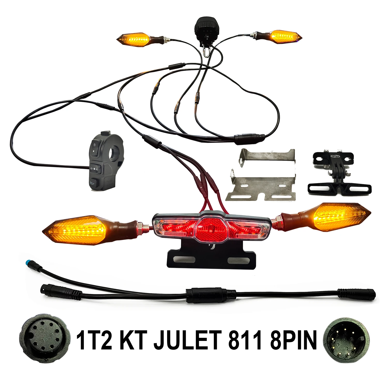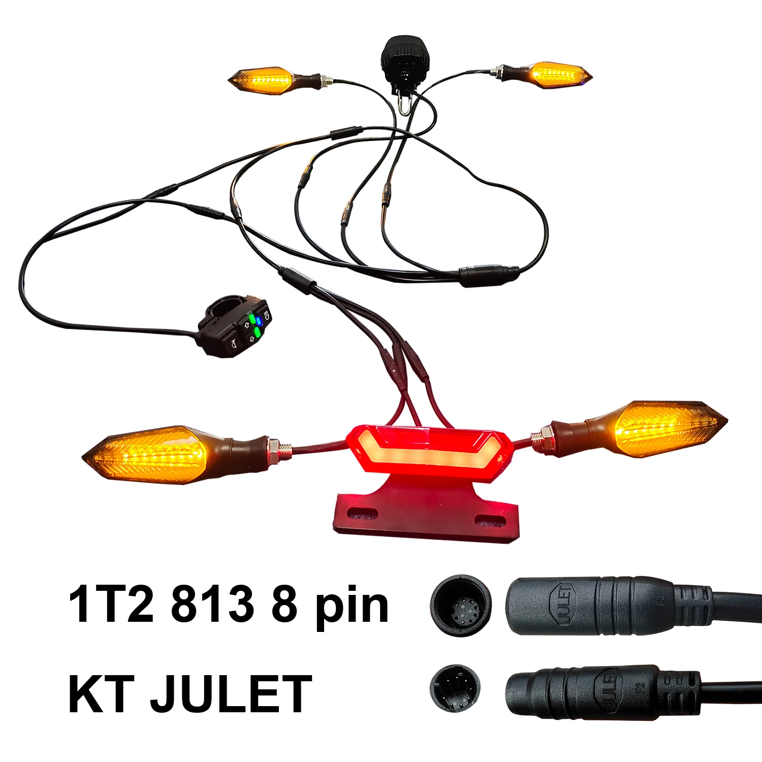 Electric Bicycle Waterproof Cable Light Set Front Rear Flashing Dynamic Turn Signals 24V 36V 48V 52V 60V For BAFANG KUNTENG
