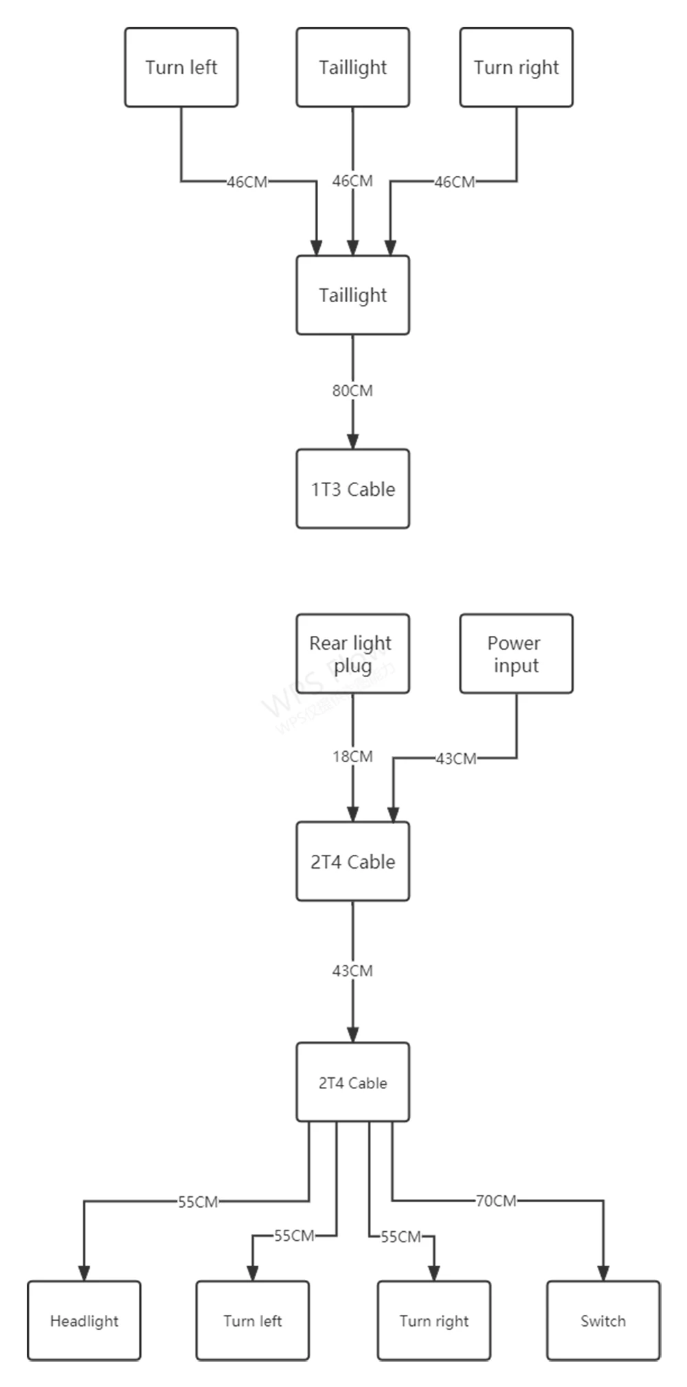 Function: Front and rear flashing water turn signal, horn, near light, rear running light, brake light, rear day running light