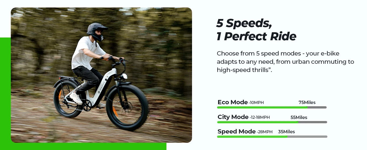 Smarter & Safer Riding-The U8 Plus Electric dirt bike features sealed hydraulic brakes for instant stopping power, Corrosion-resistant and low-maintenance. ideal for high-speed and steep terrain. Offers 4+1 smart modes: (PAS/Electric/Cruise/Walk/Pedal) for ultimate safety Riding