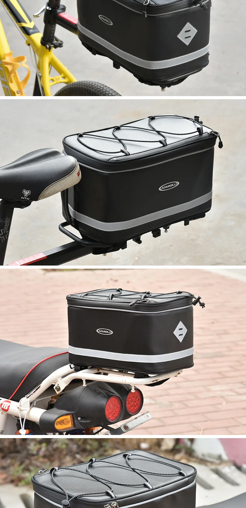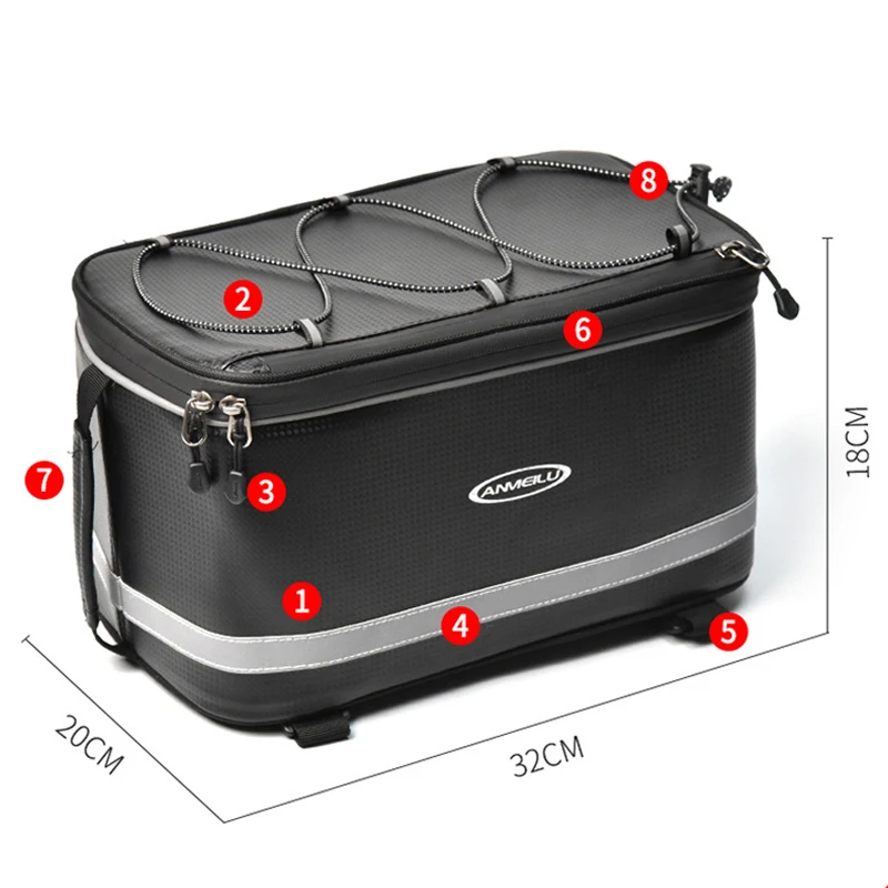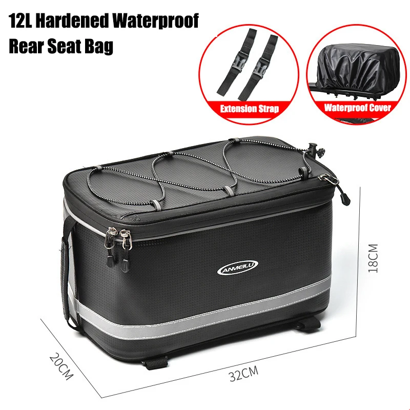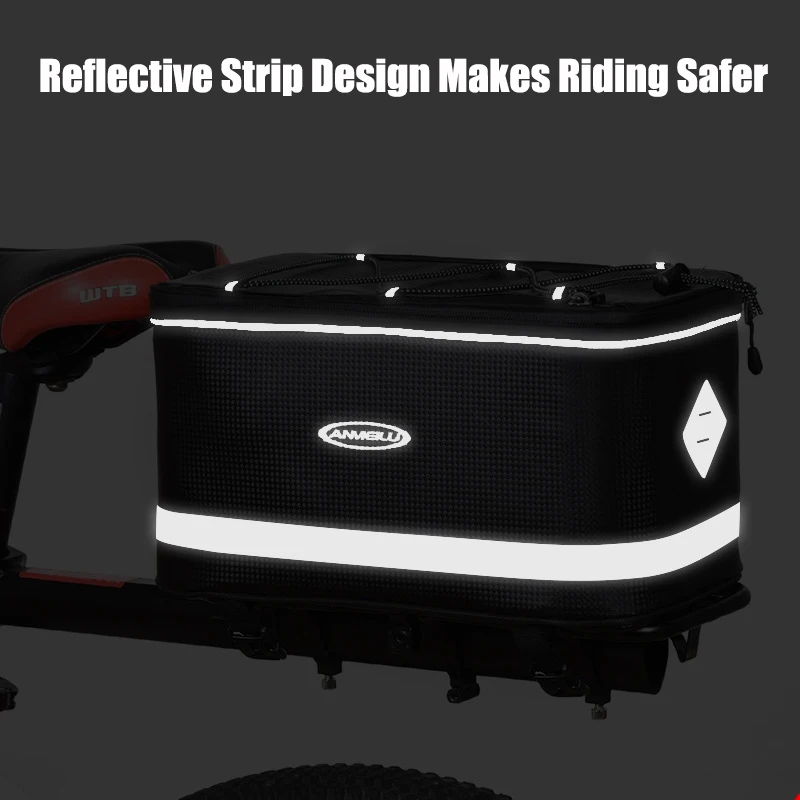 Large Capacity Bicycle Pannier Bag, Rear Rack Bag, Rear Seat Bag, Mountain Bike Tail Bag, Hard Shell with Reflective Strips