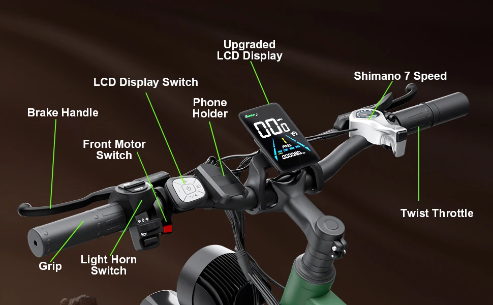 26" Fat Tires: These tires provide exceptional traction on diverse surfaces, from sandy beaches to snowy landscapes, ensuring you stay in control.