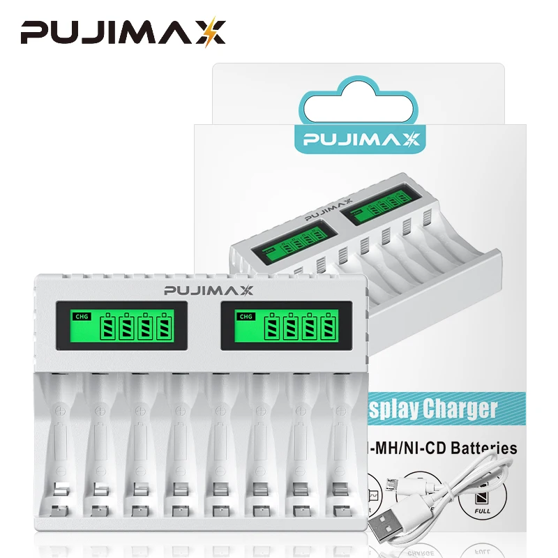 PUJIMAX New LED Display Smart Battery Charger For AA/AAA Ni-MH Rechargeable Batteries Independent Charging Battery Charger