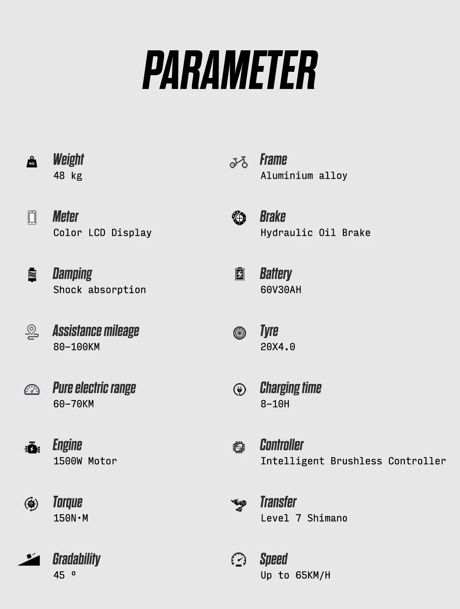 • Max Speed: <25km/h