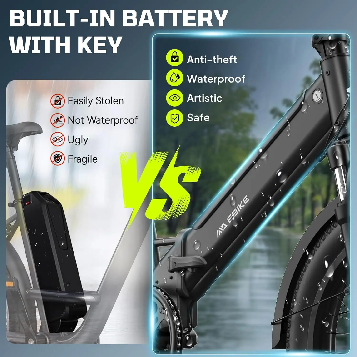 - 【Safe and Reliable Removable Battery】 The folding e bike is powered by a 36V 7.8AH removable battery that can be fully recharged in just 5 hours and can be ridden up to 40 miles at a time (PAS mode). Depending on weight, road conditions and riding style, riders can ride 20 miles in throttle mode and 40 miles in PAS mode. The built-in battery is UL certified to ensure superior safety and reliability, so you can charge it at home or elsewhere with confidence